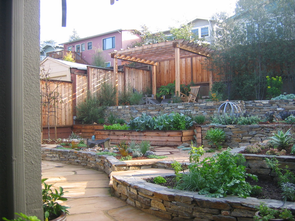 . Tiers created by stone retaining walls or rows of trees and hedges in a terraced garden result in a. As licensed architects and designers a big part of a daily day is helping our clients in the initial phases with cultivating backyard landscape design ideas. A pair of stone walls supports the upper patio and pergola with just enough room for.